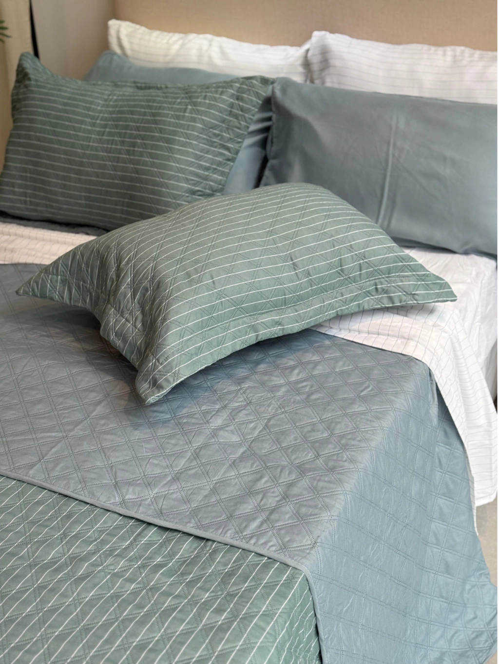 Descubrí el Kit Bambú | Cover + Sábanas (2 plazas ½) Set x9 piezas, la combinación perfecta para renovar tu dormitorio con estilo y confort. Este exclusivo set incluye: